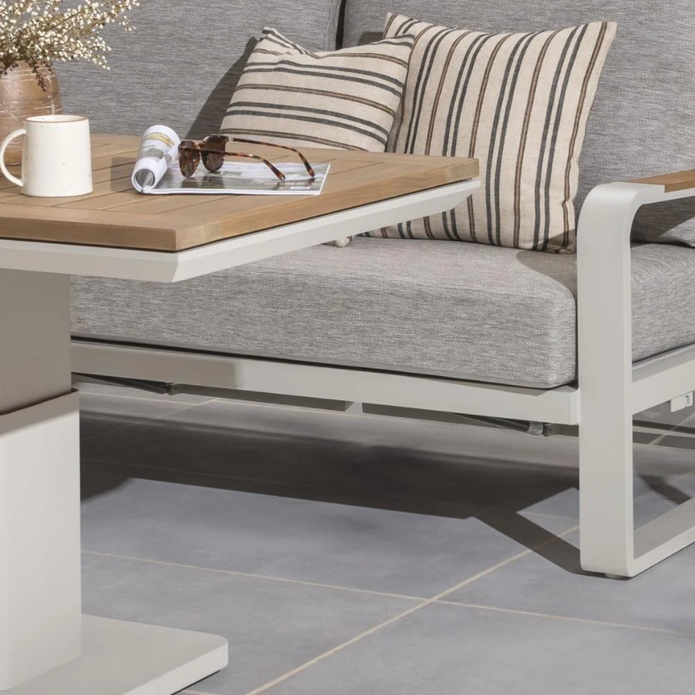 At the centre of the set is a versatile adjustable table topped with FSC certified teak. The table can be raised to dining height for outdoor meals or lowered to create a relaxed coffee table for drinks and casual gatherings. Designed for year round outdoor use, the Soltex cushions are quick drying and resistant to the elements, allowing the set to remain outside throughout the seasons. With its blend of premium materials, practical features and elegant styling, the LIFE Montana lounge set is an ideal addition to any modern patio or garden seating area.